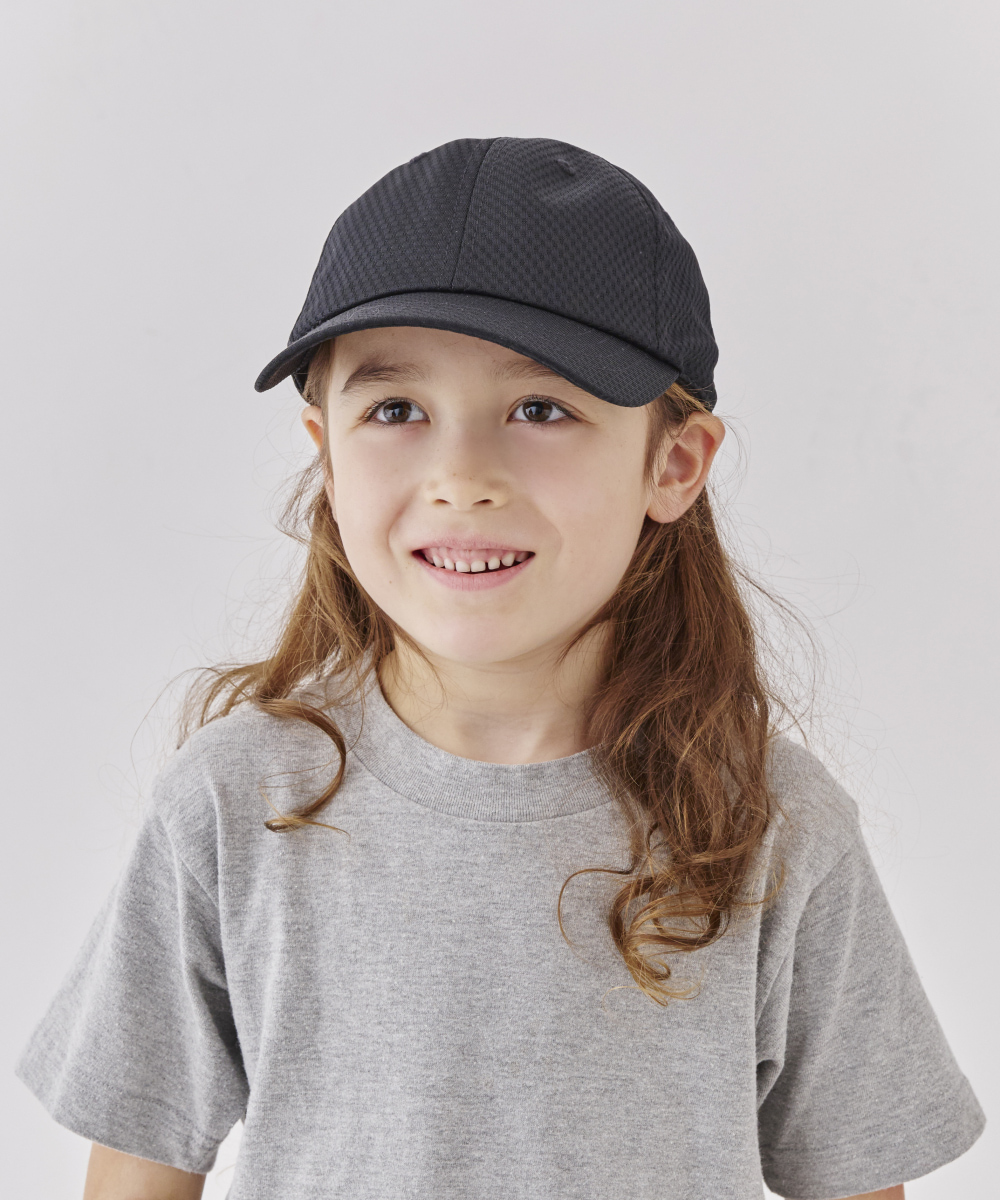 メッシュ素材で通気性抜群。熱がこもりにくく、蒸れにくいので、遊び盛りのお子様にお勧めの6パネルキャップです。(こちらはタレなし)完全に透けない織りのメッシュ地素材で、軽量かつ通気性に優れています。内側の額にあたる部分は吸水速乾素材で汗をかいても乾きやすく快適にかぶることができます。