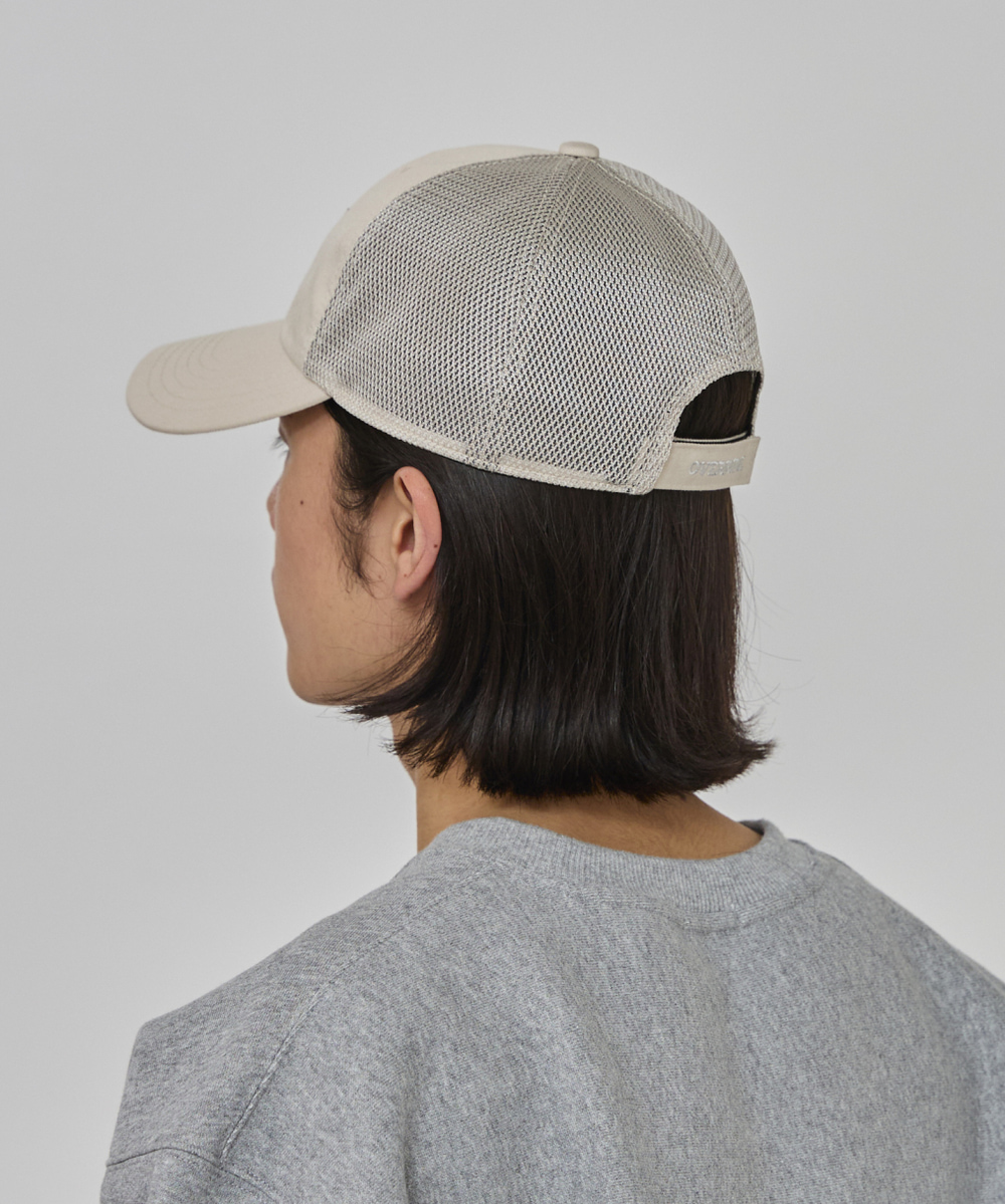 丈夫で皺ができにくく、綺麗な見た目が長続きしやすいT/Cツイル生地の6パネルキャップです。サイドとバックは、通気性が高く耐久性に優れたナイロンメッシュ。内側は、ペットボトルや繊維屑などが原料のリサイクルポリエステルを素材の一部に使用しています。クラウンは、少し深めで安定感のある被り心地で、 ツバは、型崩れしにくい硬めのカーブタイプ。ロゴタイプ刺繍入りの面ファスナーベルトで頭囲の調整が可能。洗濯ネットに入れて洗濯機で洗え、真夏に使用する帽子として気軽に洗濯できる点は忙しいライフスタイルを送る方にもぴったりです。