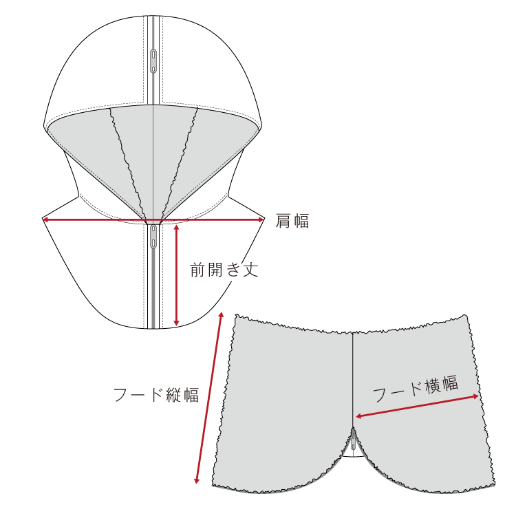 SIZE 頭周り 肩幅 フード縦 フード横 前開き丈