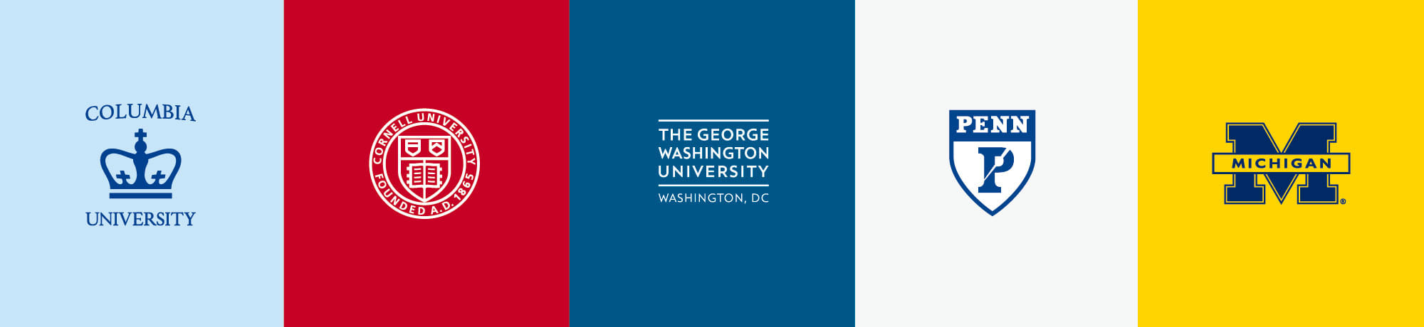 アメリカを代表する名門大学、コロンビア大学、コーネル大学、ジョージ・ワシントン大学、ペンシルベニア大学、ミシガン大学。