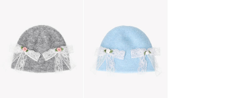 動くたびに揺れるレースが華やかで可憐な印象をプラスするニットビーニー。