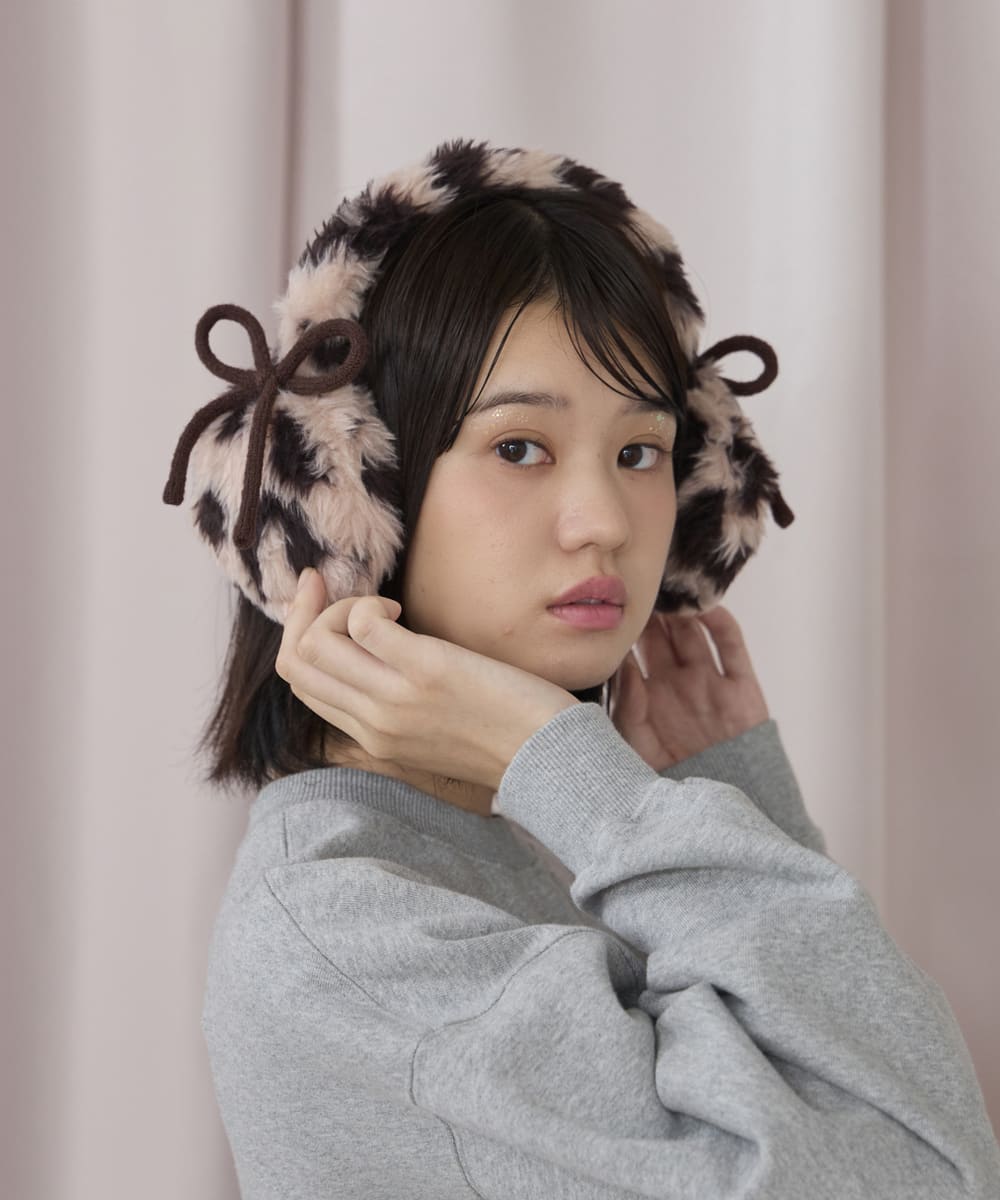 内側の柄ファーがキュート!耳当てを上げたり、下げたり、
