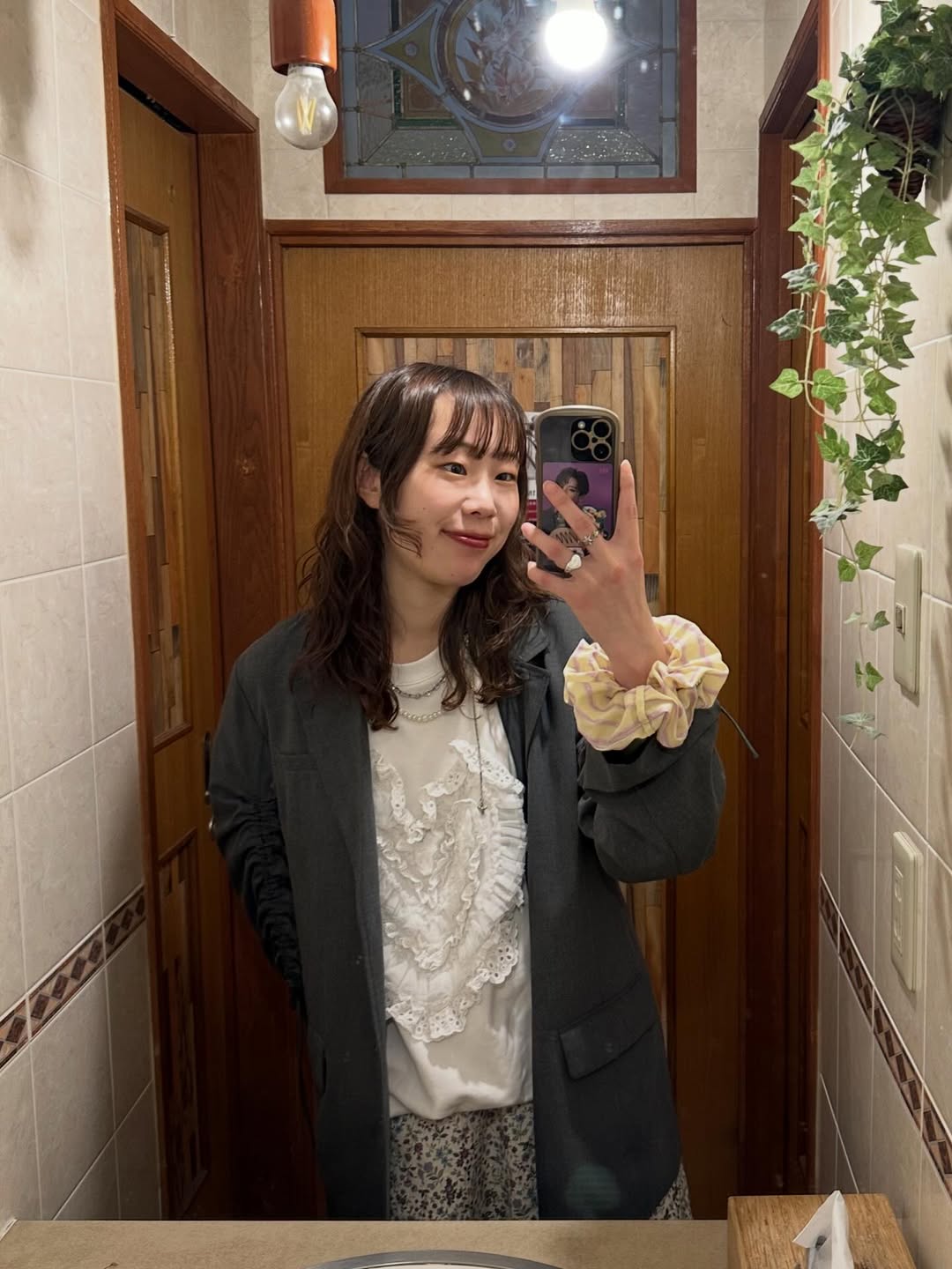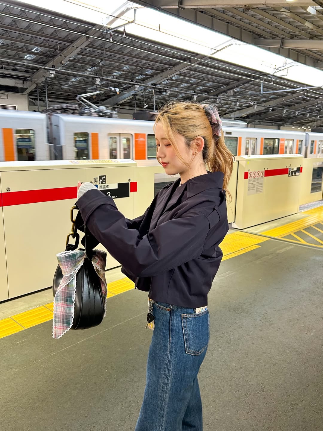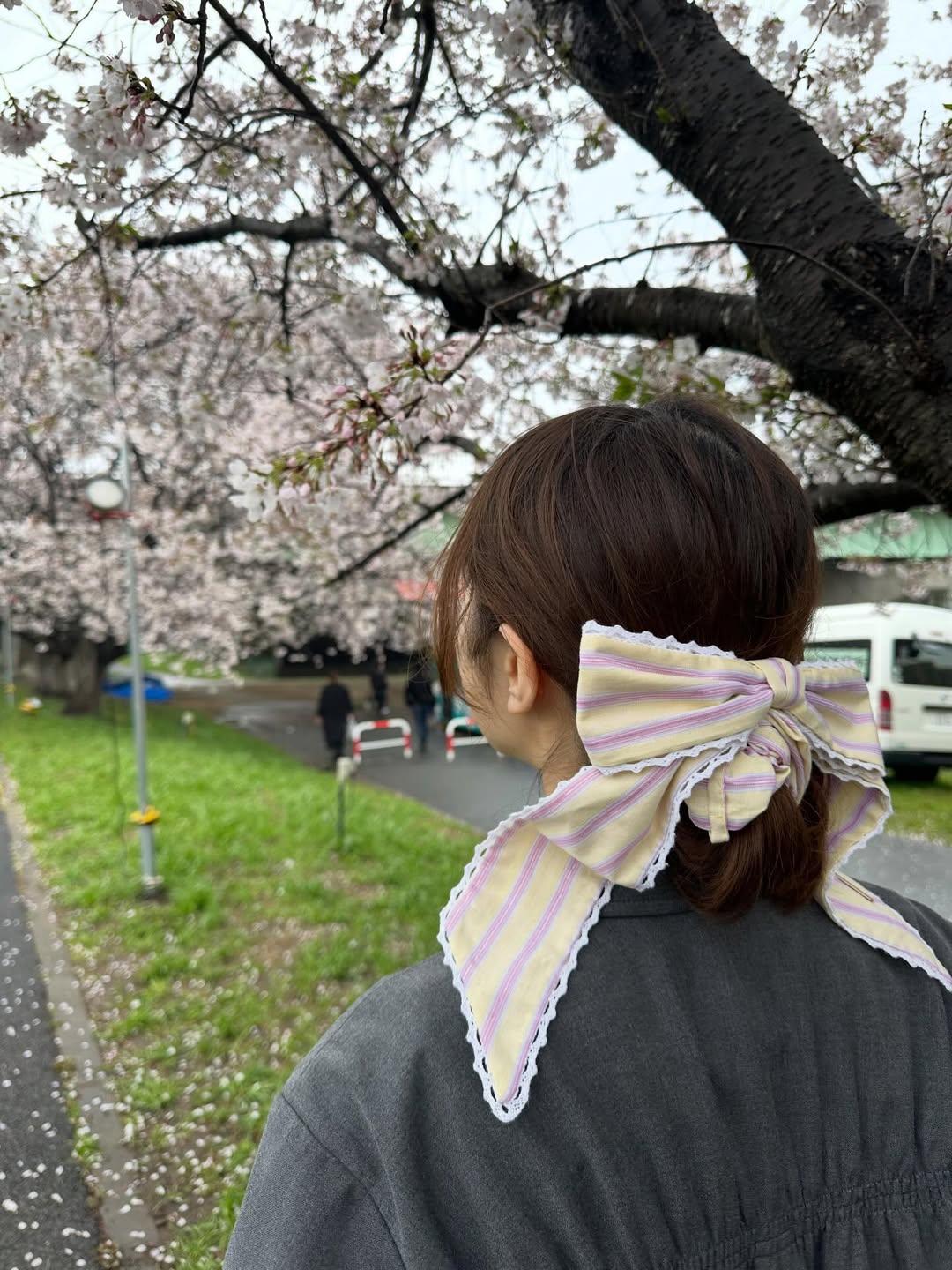 kaorinomori のシュシュをつけて。取り外し可能なリボンもついているから色んな合わせ方が出来るしこの色合いがすごく春らしくて可愛い!シュシュも大きめだから手首にでもつけるだけでコーデのアクセントになります。