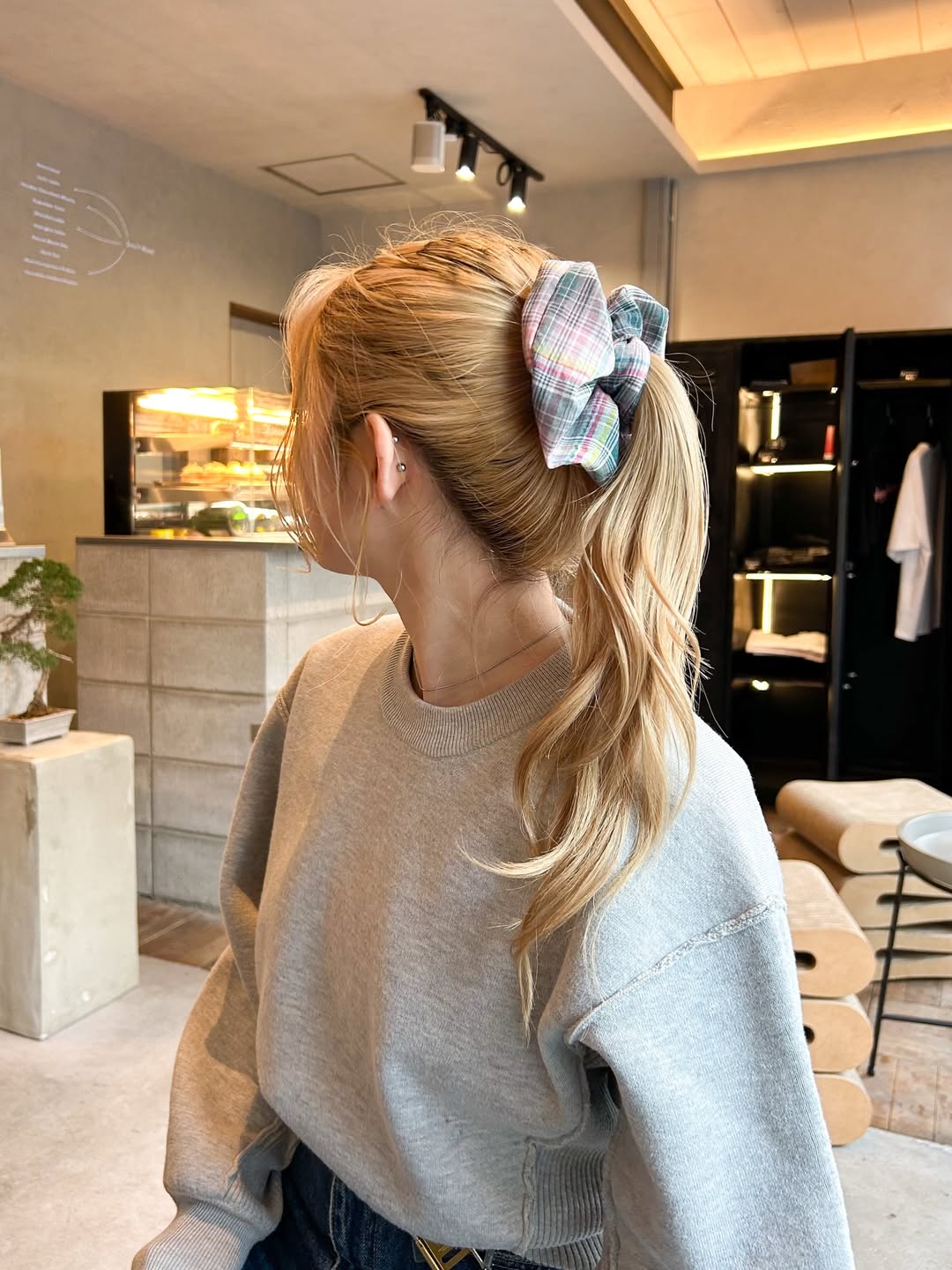 リボンとシュシュが取り外せるのでカジュアルなお洋服が多いわたしでも合わせやすかった!リボンはバッグとかにつけてもかわいいね。あと個人的にカラーの組み合わせがとってもすすき。最近髪の毛をボブにしたのでハーフアップお団子してシュシュしたい!